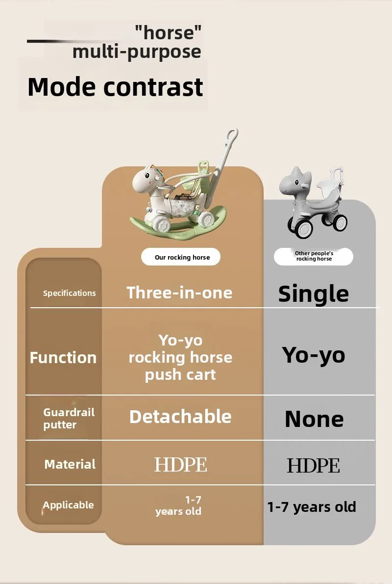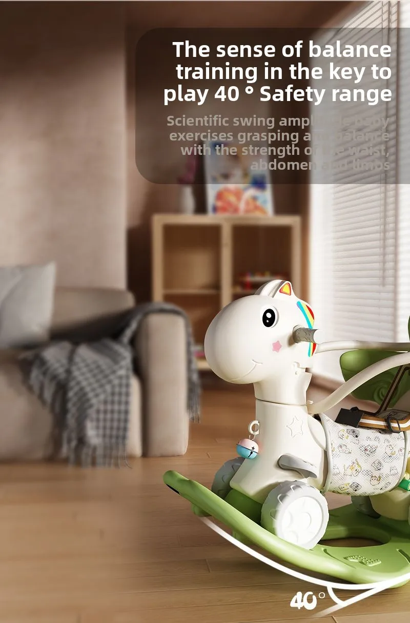 • The non-slip design is used on the handle and sitting area. Your baby can rock away in this rocking horse with worry-free