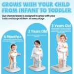 Adjustable Baby Shower Stand with Anti-Slip Base – Huggable Duck Bath Support for Infants & Toddlers (Grey)